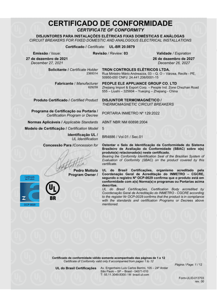 Os produtos da marca ALTRONIC são fabricados seguindo rigorosos padrões de qualidade. Por isso, nossa Linha de Relés é certificada pelo IPT e ensaiada pelo Labelo Puc. Nossos minidisjuntores com certificação do INMETRO e toda a fábrica certificada pelo rigoroso padrão de qualidade da NBR ISO 9001. Sendo assim, nossos produtos tornaram-se referência nacional em qualidade e inovação.